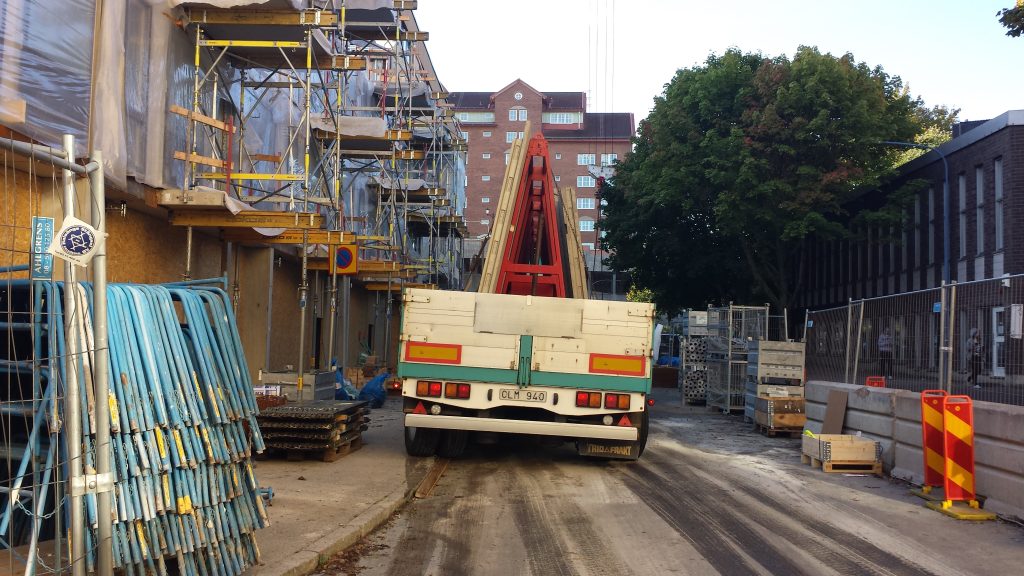 Bilden visar hur man tvingas köra upp på trottoaren(om än inte jättemycket) för att komma nära kranen. Detta kan medföra risk vid lossning, dvs väggar som kan välta på grund av lutning.Om du som förare anser att det medför risk att lossa så är det din rättighet och skyldighet att vägra lossa. Viktigt är i […]