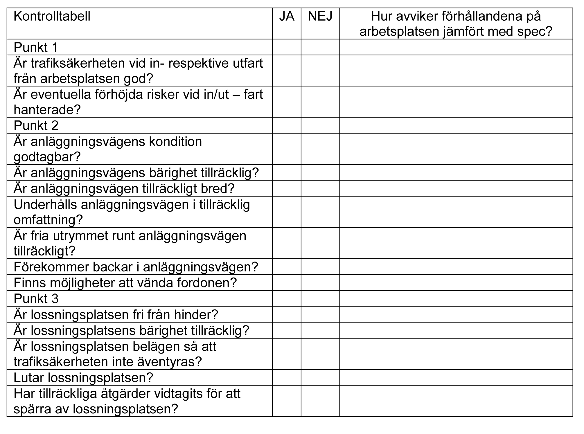 Nyhet, riskanalys skall genomföras på arbetsplatsen genom ifyllande av nedan kontrolltabell