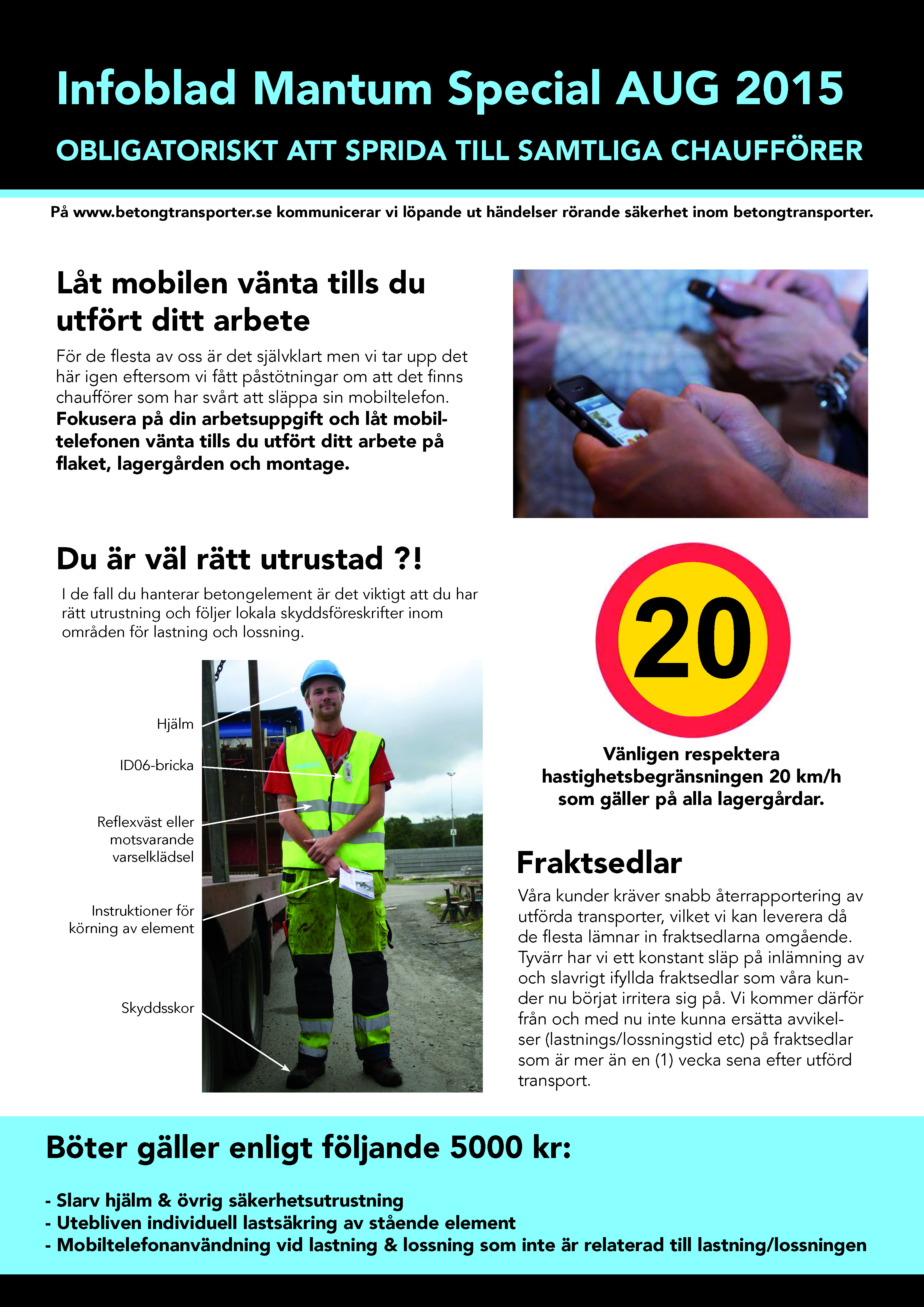 Denna sajt syftar till att på ett enkelt och kontinuerligt sätt snabbt kommunicera händelser rörande säkerhet som uppstår inom betongtransporter i vår vardag.