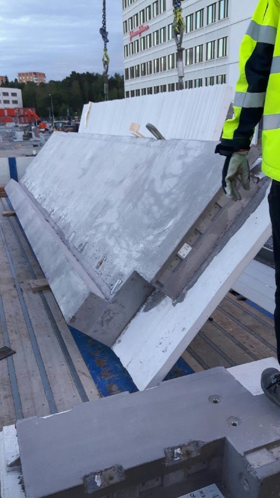 Väggarna stod mot varandra och när första väggen lyftes så välte den andra väggen mot den som lyftes. Mot bakgrund av känsligheten så ställs väggarna mot varandra och de korsdras under transport. Dock är det väldigt svårt att individuellt lastsäkra vid lastning och lossning. Korsdragningen görs i lyften, men det innebär att väggen […]