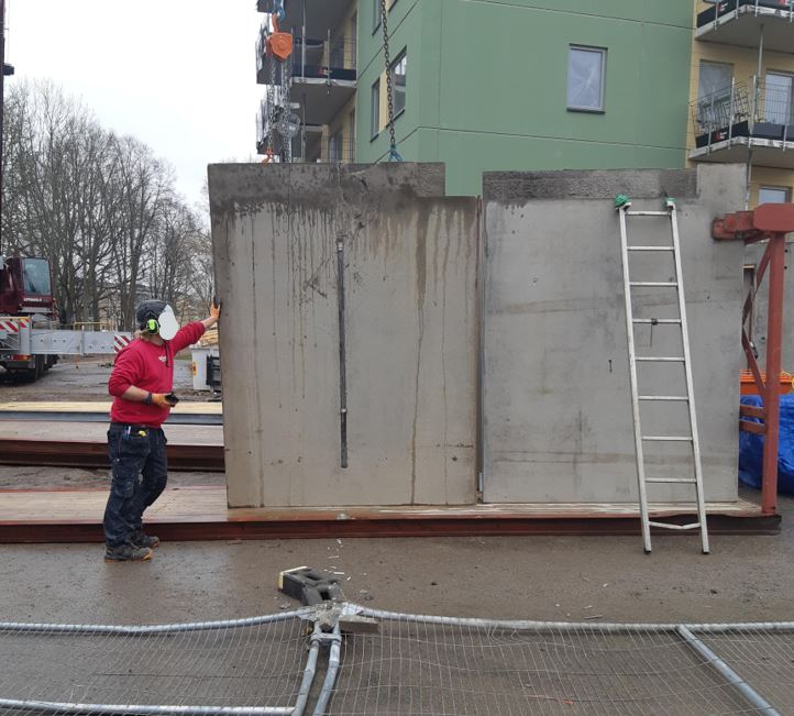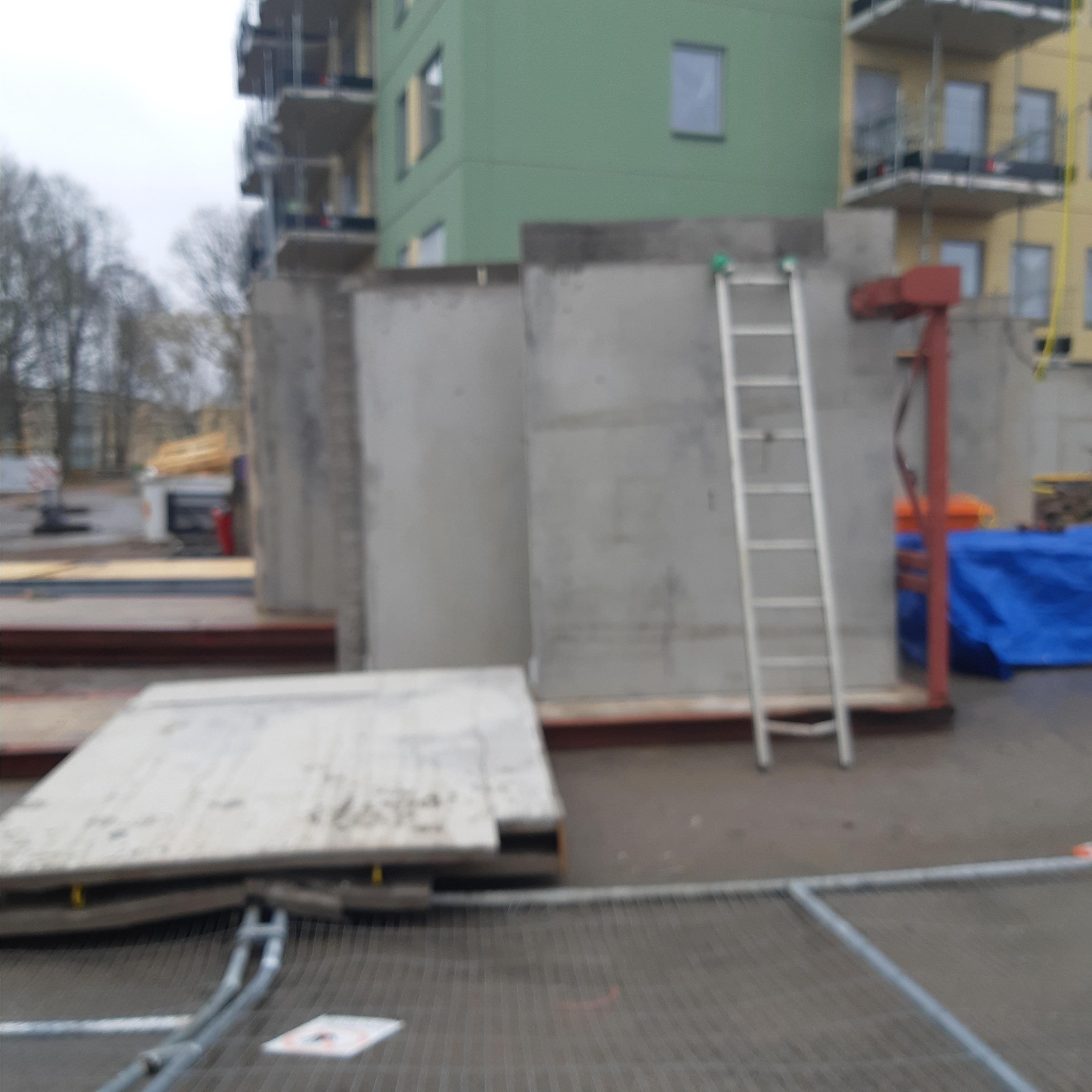 Denna vägg har vält då den varit inklämd mellan två längre väggar. När den yttre längre väggen lyftes så föll väggen som då stod helt fritt.